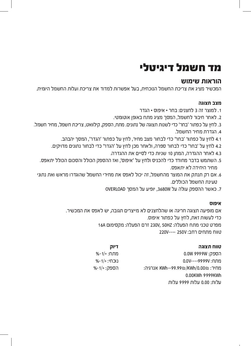 מחיר: KWh–99.99ש"ח/KWh/0.00 ש"ח