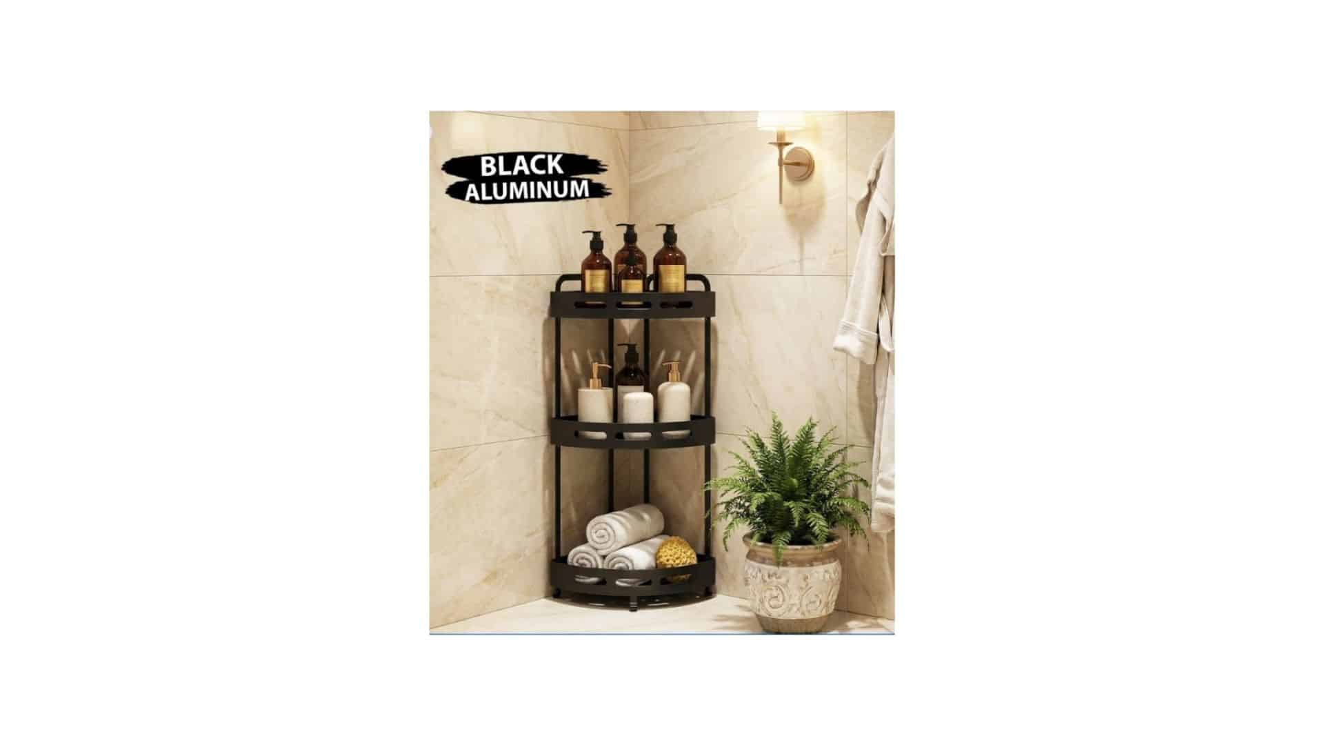 מעמד פינתי לאמבטיה מאלומיניום איכותי בצבע שחור – שילוב מושלם של עיצוב ופונקציונליות, 3 קומות שחור