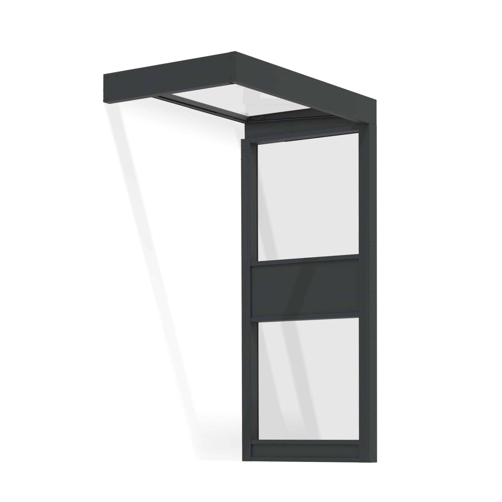 קיר הצד של סדרת SOPHIA משלים את הגגון ויוצר כניסה מעוצבת ומוגנת יותר. הוא מיועד לשימוש יחד עם גגוני SOPHIA בלבד, ומוסיף שכבת הגנה יעילה מפני רוח, גשם ושלג.