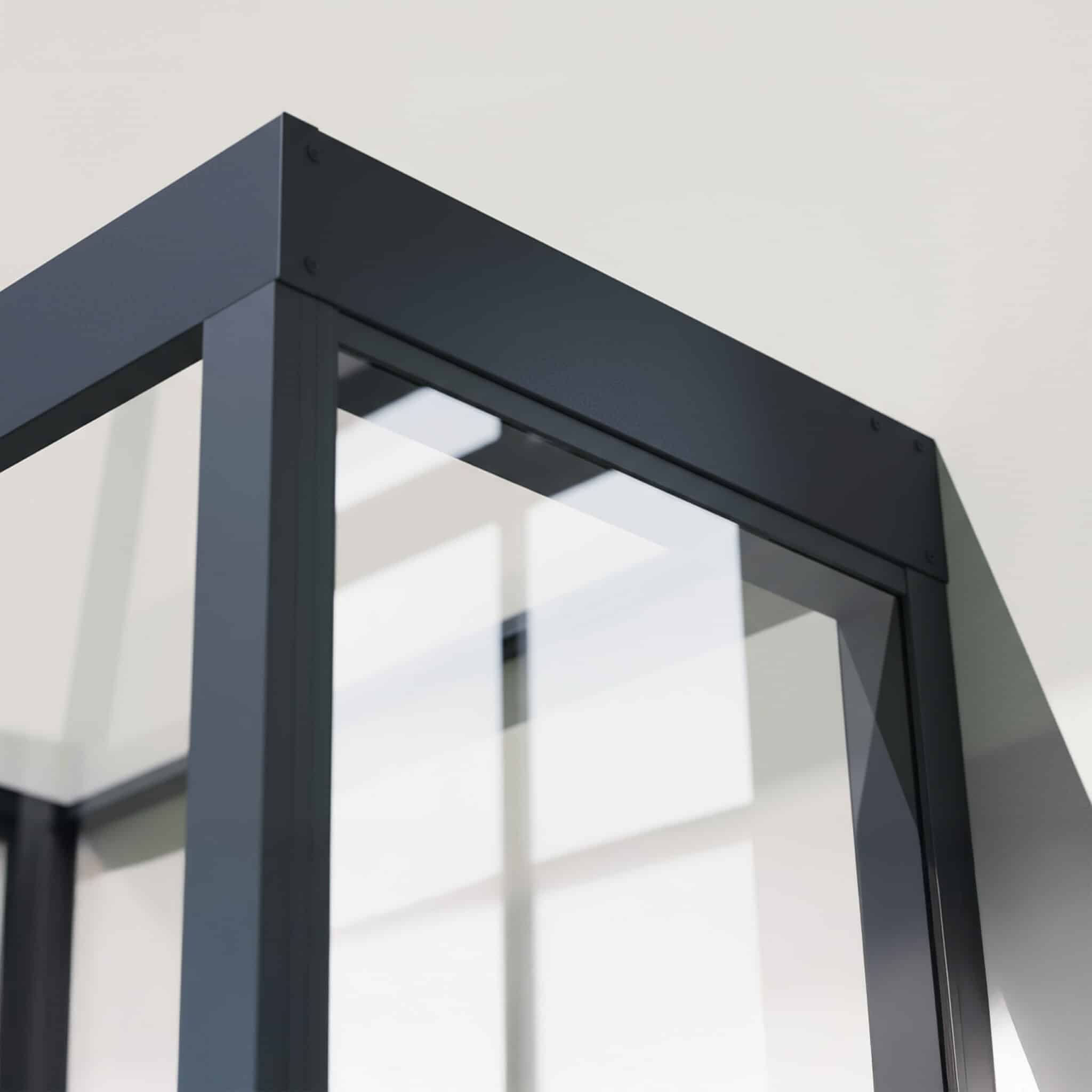 - פרופילי אלומיניום עם תומכות פלדה מגולוונת בגימור אפור כהה.