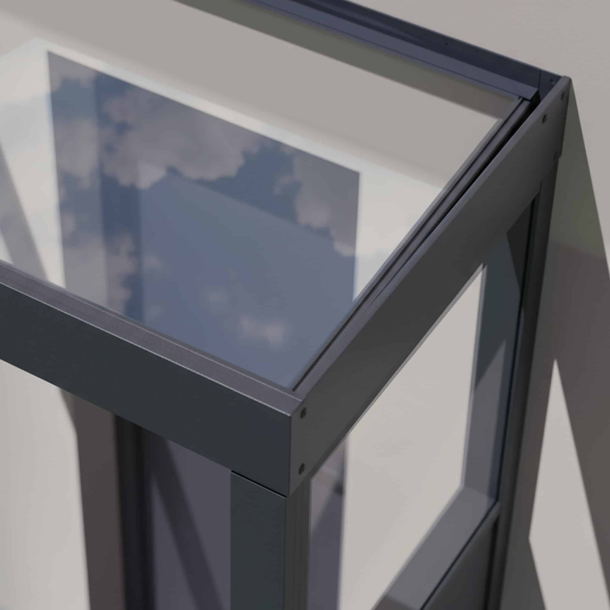 - מסגרת אלומיניום בצבע אפור כהה עמידה בפני חלודה ושחיקה