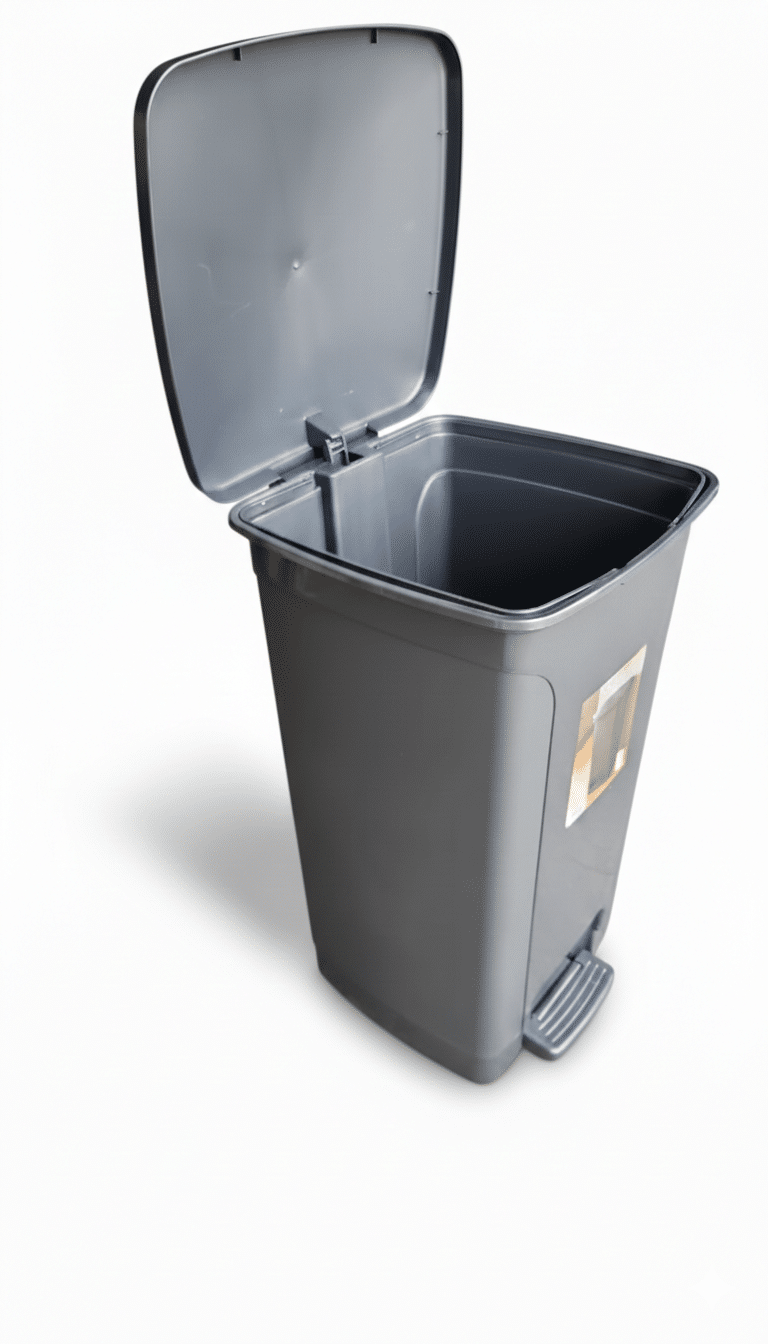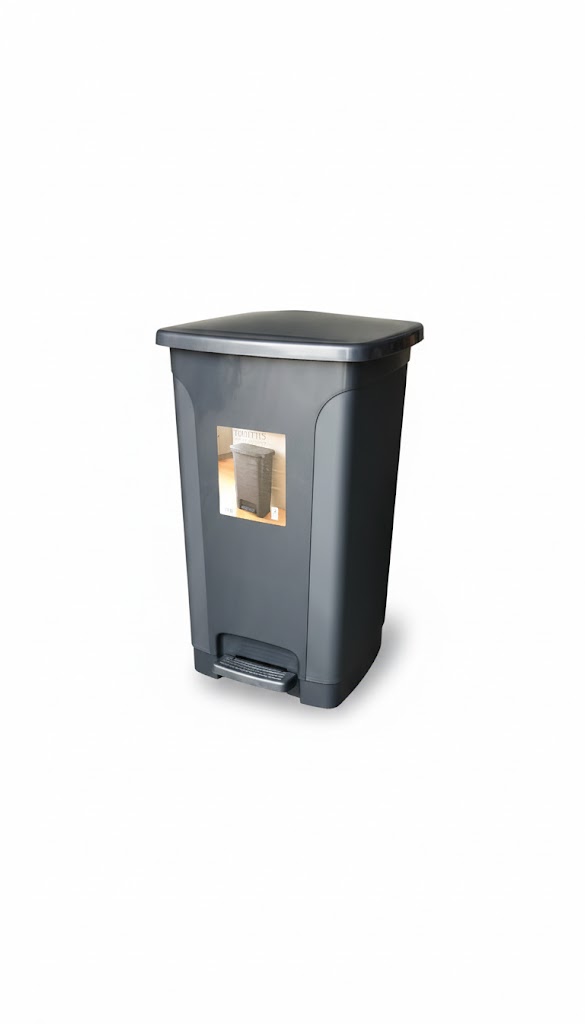 פח אשפה איכותי ומעוצב מפלסטיק בנפח 55 ליטר הכולל פדל לפתיחה יעילה ונוחה.