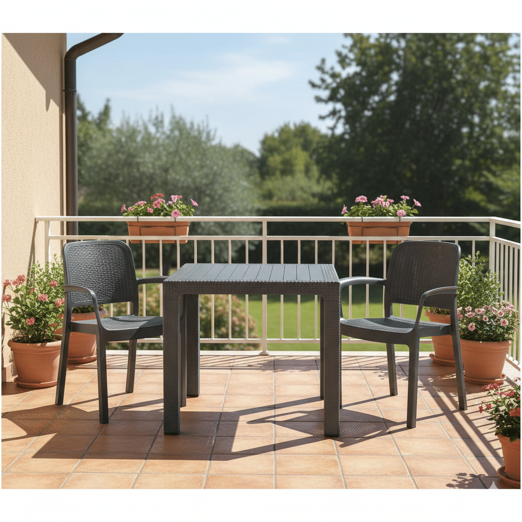 עמידות בכל מזג אוויר: הסט עשוי פוליפרופילן מחוזק ואיכותי עם הגנת UV, כך שהוא שומר על הגוון והמראה היוקרתי גם בשמש הישראלית.
